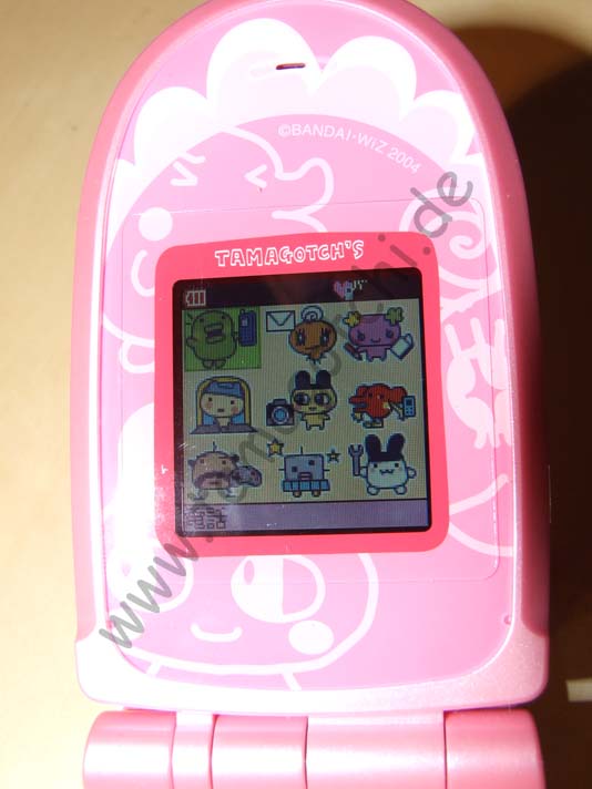 Die ersten 3 Bilder zeigen das japanische Tamagotchi Handy. Dann kommt der Musik-Player, Kamera, Game Boy Spiel V3 mit Osu/Mesu Charakteren. Auf dem nächsten Foto ist der Game Boy in der Tamagotchi Edition zu sehen. Dann das MameGame, eine Art Tetris, ein N64 Spiel, das V2 Gameboy Spiel mit Morino und Ocean-Charakteren und zum Schluß noch der Handykarton^^