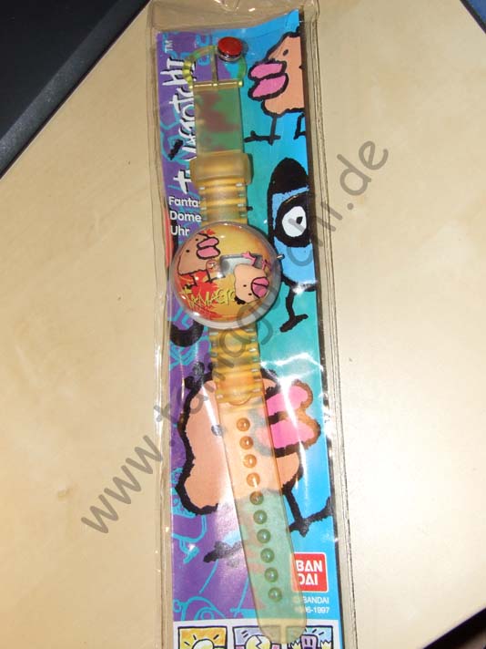 Die ersten 8 Uhren sind sog. digitale "Bubble Watches" Sie haben eine halbe Kugel mit Flüssigkeit gefüllt, in der ein Charakter schwimmt. Die nächste Uhr ist eine normale mit Zeigern in der Optik eines Gen1. Dann kommt ein Tamagotchi Wecker, den ich persönlich sehr schön finde. Die darauf folgenden 2 Angel Uhren finde ich auch wunderschön. Sie sieht sehr detailreich und edel in der Optik. Leider sind die nur für zierliche Kinderhände gemacht^^ Zum Schluß seht ihr ein "Mezamatch". Das ist ein Tamagotchi Wecker, der ähnlich einem Tamagotchi bedient wird und ein Digital Display hat.